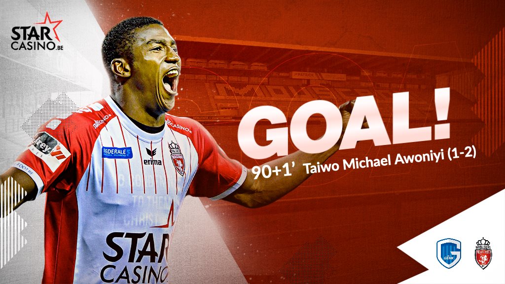 Genk 1 Royal Excel Mouscron 2: Taiwo Awoniyi scores late winner to keep 100% goal scoring record