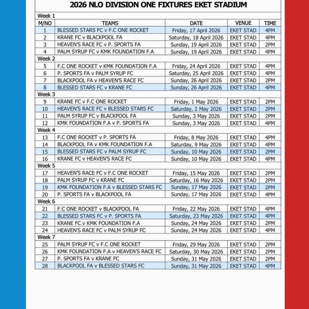 Blessed Stars are seen as one of the strong contenders to win the Eket Centre this season. However, they face a tough opening match against FC ONE Rocket, who were winners of the Uyo Centre last season.